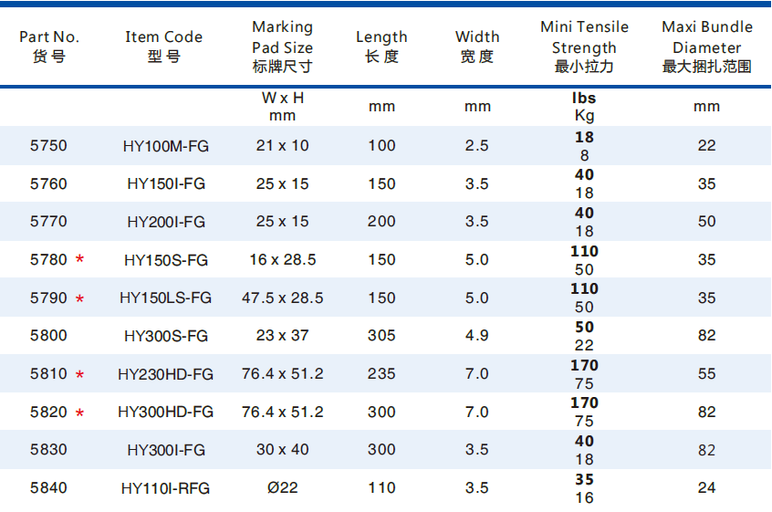 特别:扎带前端设有白标牌,使用油性笔在上面标志记号